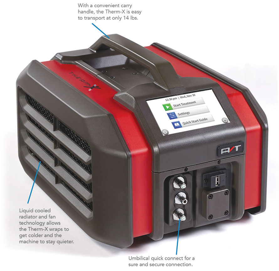 The Therm-X AT combines cold, heat, contrast, and compression therapy, in one easily portable machine.