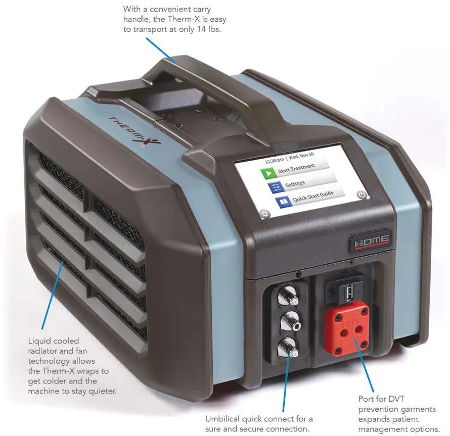 Get your patients colder faster with the most effective cold compression product on the market. The Therm-X can deliver single cycle temperatures as cold as 34 degrees (as cold as any ice machine). If continuous cold is needed the Therm-X can be set to 40 degrees, colder than any of its thermoelectric competitors.